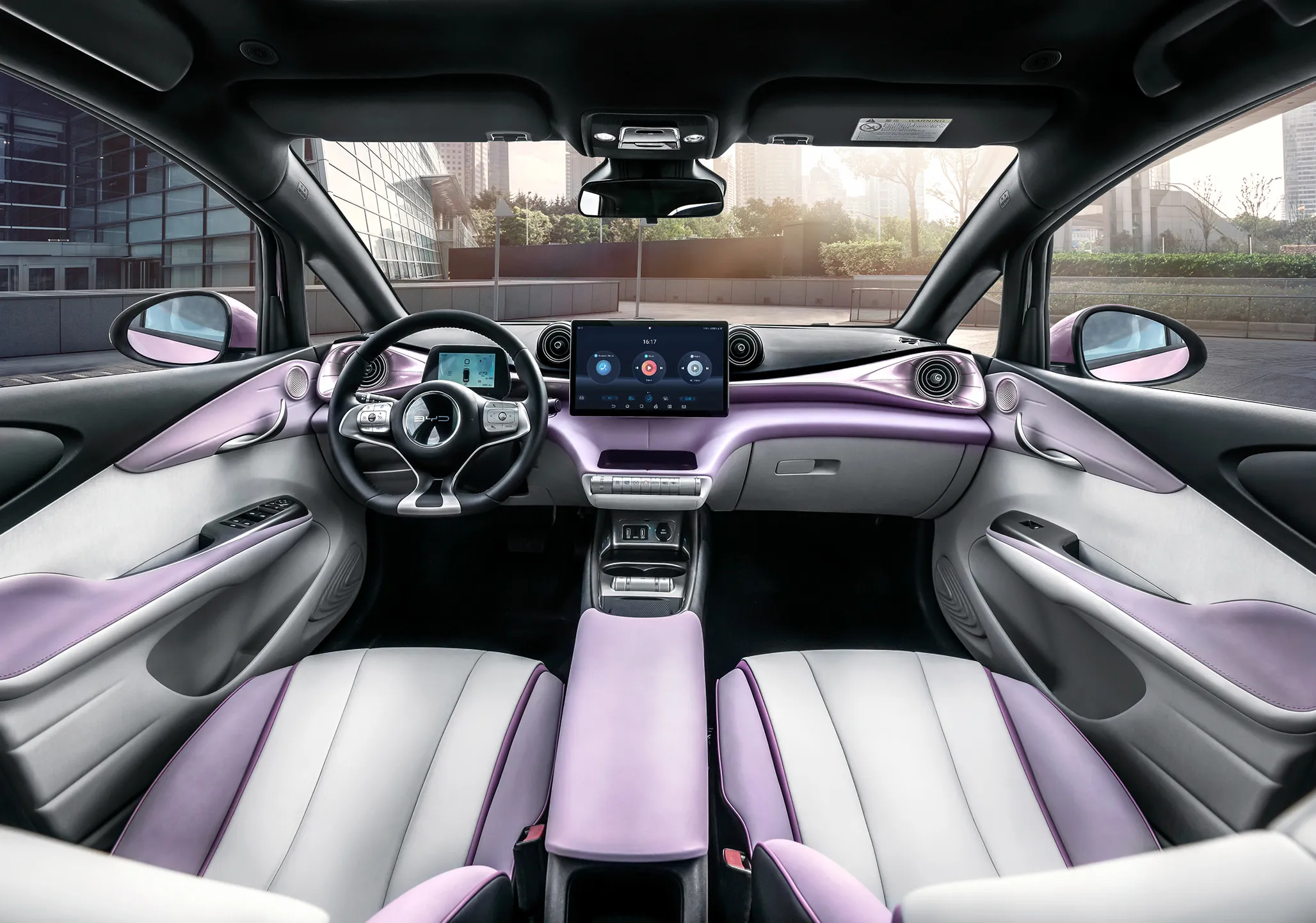 Không gian nội thất tiếp nối dòng chảy thiết kế. Điểm nhấn là bảng điều khiển trung tâm dạng treo, một kiến trúc tương lai tạo cảm giác hiện đại và rộng mở. Các chi tiết kim loại được chế tác tinh xảo thành một bề mặt cong tối giản.