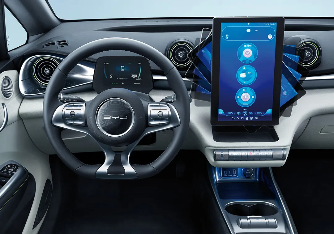 Trung tâm điều khiển công nghệ của xe là màn hình cảm ứng xoay thông minh 12,8 inch độc đáo. Kết hợp cùng vô lăng ba chấu thể thao và cụm đồng hồ kỹ thuật số nhỏ gọn, màn hình này mang lại trải nghiệm tương tác trực quan, tiện lợi và đầy phong cách.