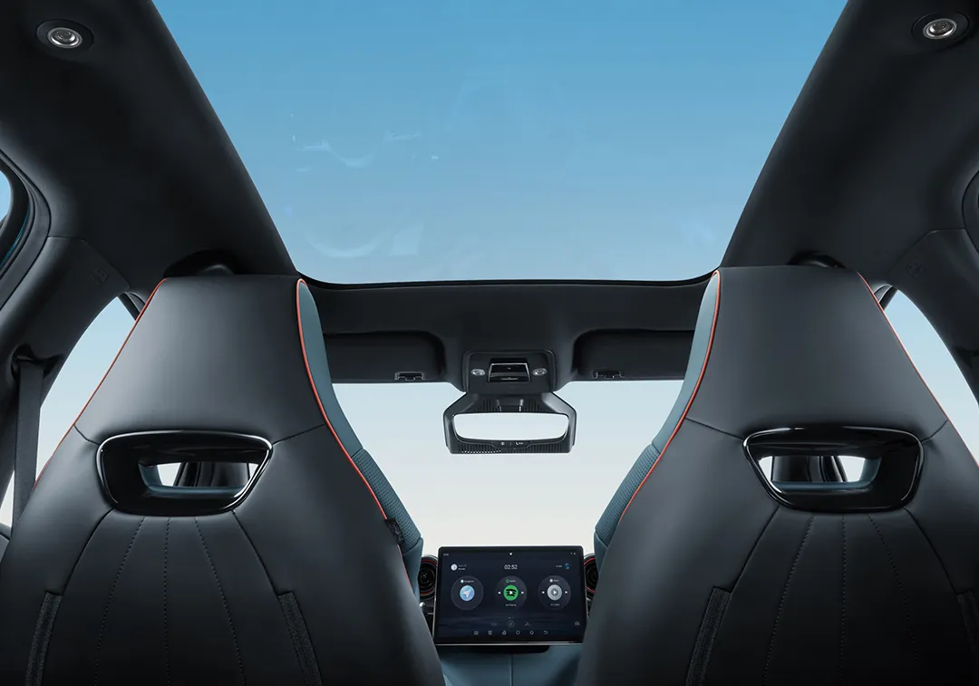 Mái kính toàn cảnh cỡ lớn bao phủ toàn bộ cabin, mang đến tầm nhìn góc cực rộng vô song và cho phép ánh sáng tràn vào không gian nội thất thật rộng rãi