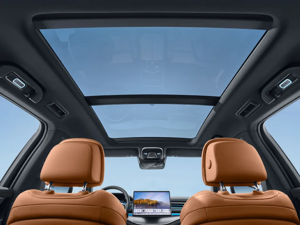 Một không gian mở đầy cảm hứng. Cửa sổ trời toàn cảnh Panorama cỡ lớn giúp không gian nội thất ngập tràn ánh sáng tự nhiên, xóa nhòa ranh giới với bên ngoài, mang lại cảm giác thoáng đãng và tự do vô tận cho mọi hành trình.